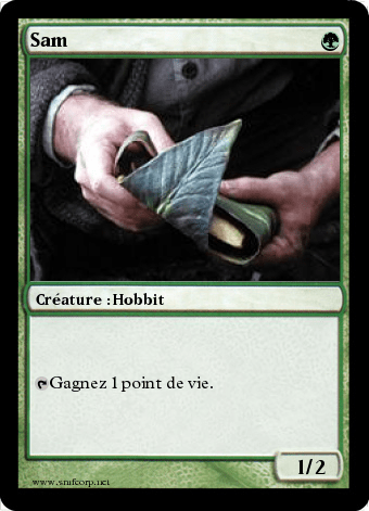 Il nous propose aujourd’hui des cartes spéciales pour Magic the Gathering spécial Seigneur des Anneaux. Ca le fait, non ? Hop, vous imprimez le tout en proxy et c’est parti !